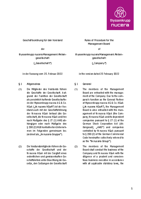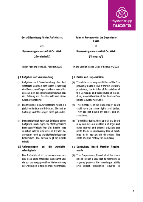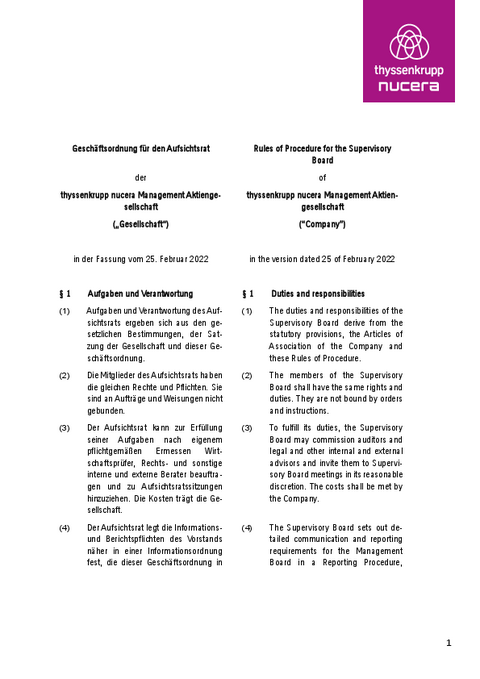 Rules of Procedure for the Supervisory Board of thyssenkrupp nucera Management AG