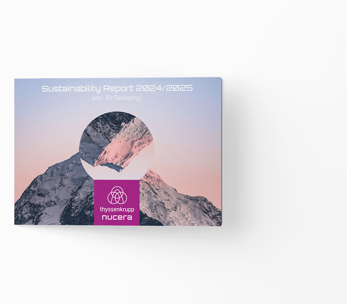 "For us at thyssenkrupp nucera, there is no alternative to a responsible and sustainable business approach. It corresponds to our full conviction. By acting sustainably, we make a decisive contribution to society and long-term value creation. Our social responsibility and relevance are therefore much more than our technology for producing green hydrogen."